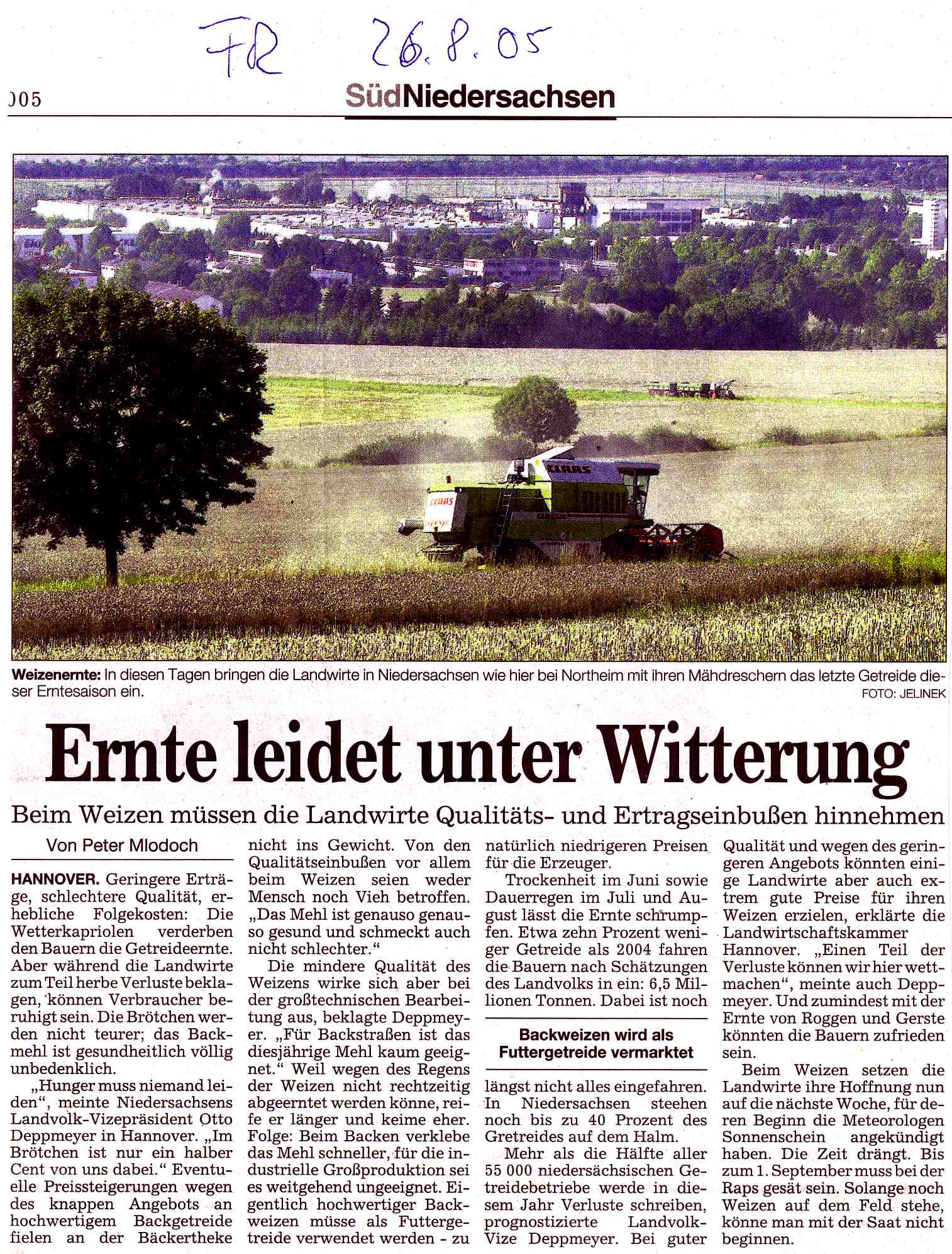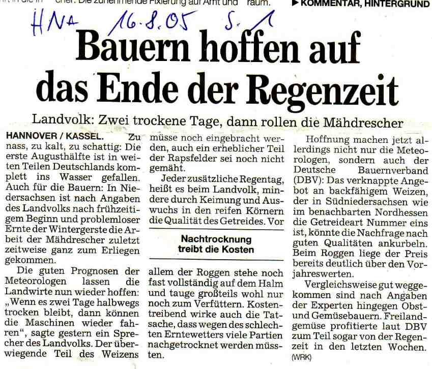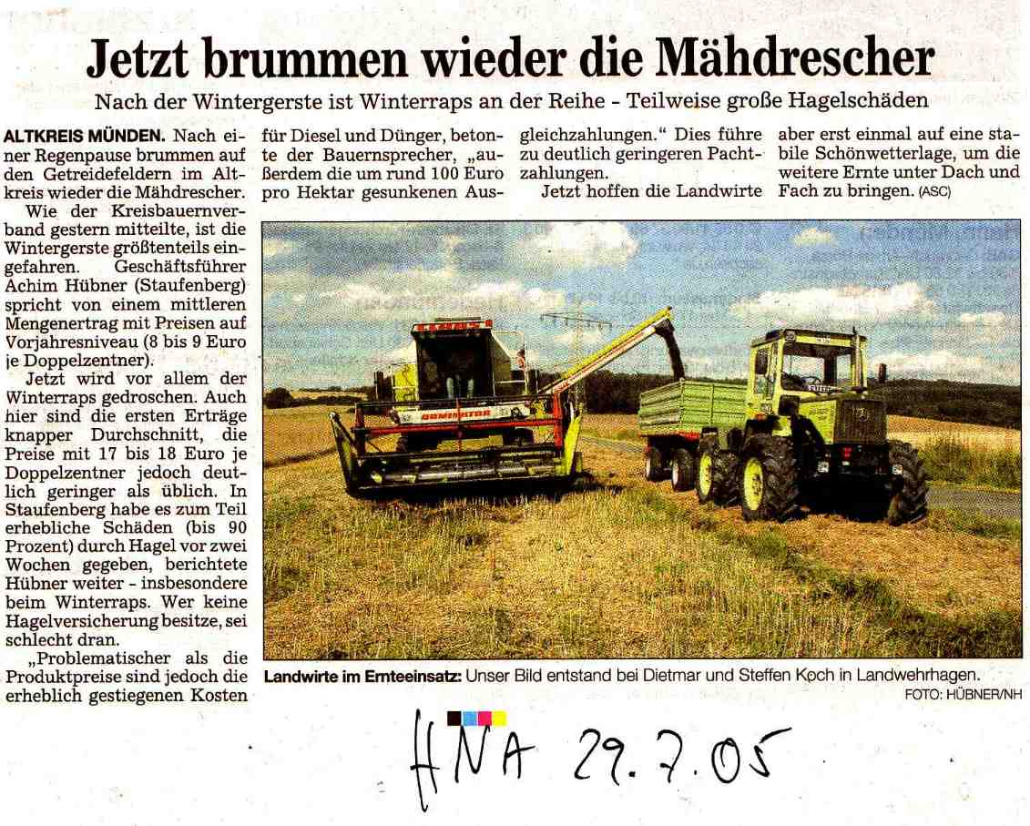 Einige Info´s und Impressionen zur Getreideernte 2005