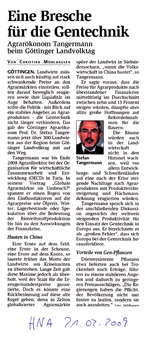 über Politik und Handel im Bereich Landwirtschaft wichtige Anstöße gegeben.