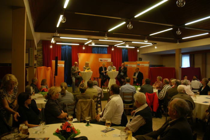 Moderator Werner Wille begrüßte auf dem Podium: , Uwe Scheibler , Martin Bäumer, MdL; Dinah Stollwerck-Bauer, Hubert Kellner und Dr. Dirk Augustin