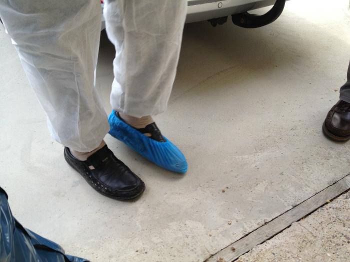 besichtigt. Die auf den Fotos zu sehenden Schutzanzüge dienen der