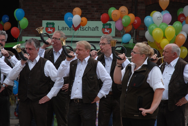 Begrüßung durch das Landvolk und die Betriebsleiter. Für die musikalische