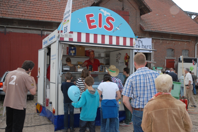 Rapsöl und Kartoffeln aus der Region. Bauernhofeis, Fischbrötchen,