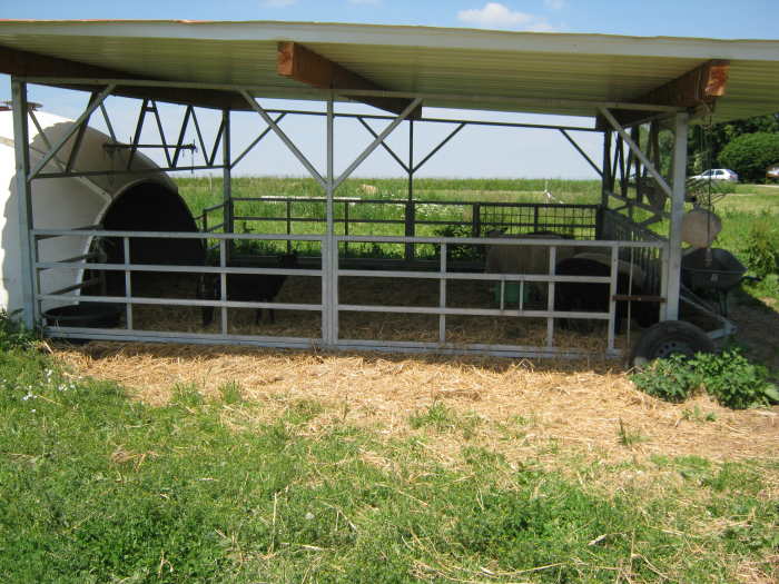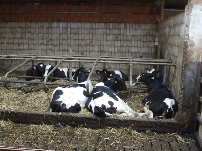 ein Kalb und eine Sau mit Ferkeln. Hiervon wird eine Familie ernährt und