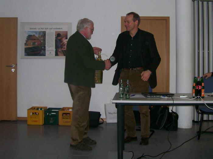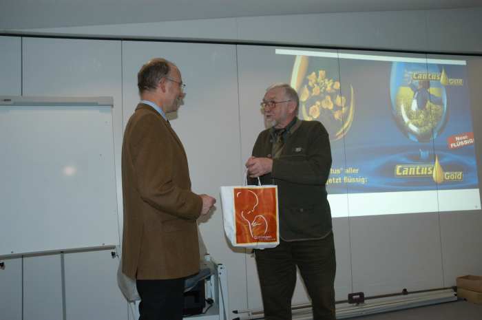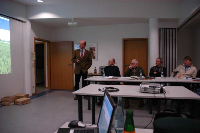 Winter 2007/2008 vor voll besetztem Raum im Landvolkhaus hat Eugen