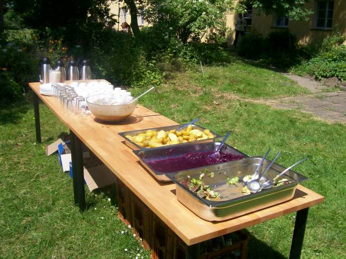Bei Erdbeertorte und Blechkuchen, Kaffee und Tee gab es von den alten